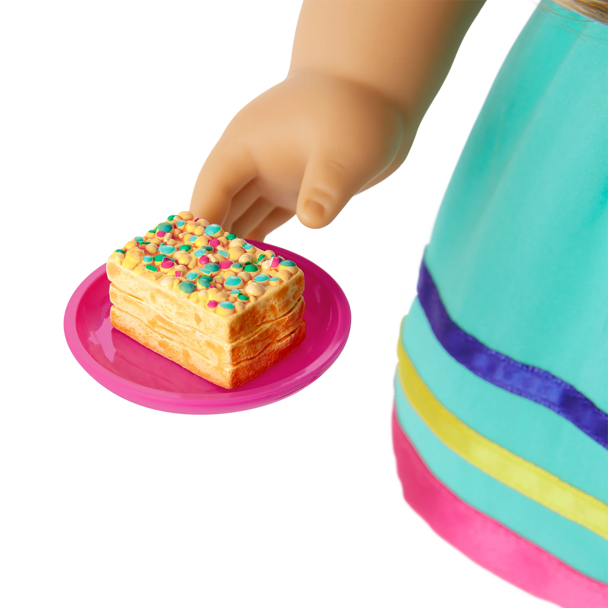 - A layered cookie dessert with sprinkles on top known as turrón de doña pepa in Peru—it comes on a pink plate the doll can hold